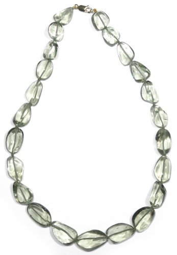 >>14k Yellow Gold Lab-Created Green Amethyst Necklace, 17" Green amethyst is a unique and alluring gemstone, prized by collectors for its delicate pale green color. This magnificent beaded necklace holds 23 polished nuggets of created green amethyst. Glossy and transparent, with a hint of green color, the beads create an intriguing look. The 17-inch necklace is finished with a lobster claw clasp in 14 karat yellow gold.